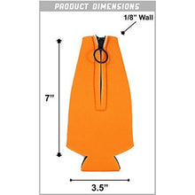 1/8" (3mm) USA made poly foam material. Fits 12 oz beer bottles. Collapsible bottom, folds flat for storage. Keeps beer colder and hands dry. Prevents surface damage from condensation. Design is dyed into fabric for an all-over print.