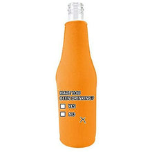 • Load image into Gallery viewer, orange zipper beer bottle koozie with have you been drinking design