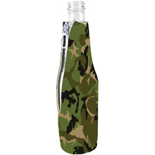 Made of 1/8" (3mm) neoprene (similar to a wet suit) material. Full glued in non-skid rubber bottom. Fits regular 12 oz long neck beer bottles. Zipper on reverse side for easy access. Keeps beer colder longer and hands dry. Prevents table damage from condensation. Graphic is a durable vinyl heat transfer.