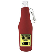 • Load image into Gallery viewer, Trespassers Offered a Shot Beer Bottle Coolie With Opener