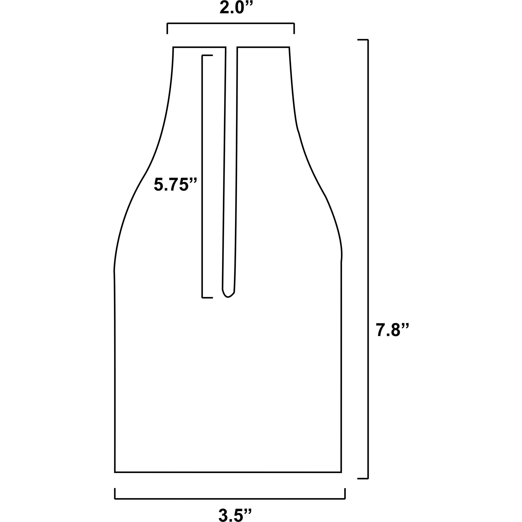 1/8" (thickness) neoprene material. Built for standard height (long neck) 12 oz. beer bottles (won't fit shorter bottles) and has a zipper for easy access. Full glued in non skid rubber bottom for stability. Helps prevent surface damage by limiting condensation. Design is a durable, high quality heat transfer; Printed on 1 side.