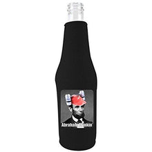 Made of 1/8" (3mm) neoprene (similar to a wet suit) material. Full glued in non-skid rubber bottom. Fits regular 12 oz long neck beer bottles. Zipper on reverse side for easy access. Keeps beer colder longer and hands dry. Prevents table damage from condensation. Graphic is a durable vinyl heat transfer.