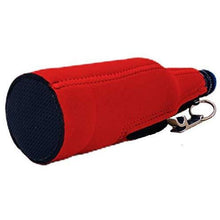 Made of 1/8" (3mm) neoprene (similar to a wet suit) material. Full glued in non-skid rubber bottom. Fits regular 12 oz long neck beer bottles. Metal bottle opener attached at zipper pull. Keeps beer colder longer and hands dry. Prevents table damage from condensation. Graphic is a durable vinyl heat transfer.